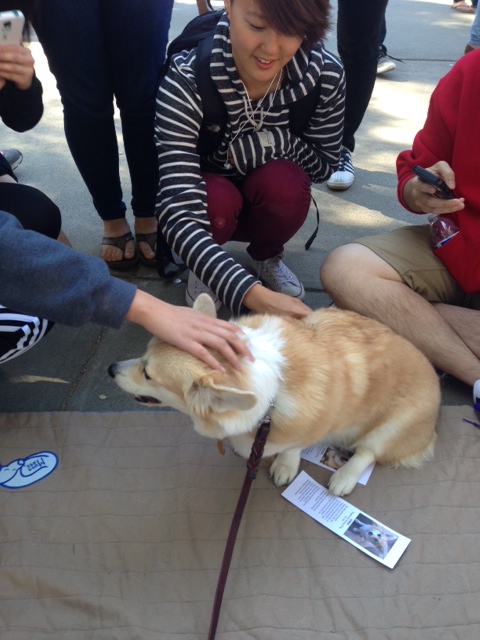 I heard students say that they missed their dogs back home, how spending time petting a corgi made all the test stress disappear and as soon as they saw the dogs, a few claimed they began to relax. No one even cared that some old guy was on the other end of the leash, all attention was on the dogs, as it should be.