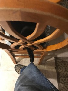 I stumble downstairs, nearly tripping over the Corgi “Watchdog” who has given up trying to police the house from #NotMyCat. As I pull into the kitchen, the scratching stops. #NotMyCat is pretending to be sound asleep on one of the kitchen chairs. I swear she gave me a little side eye with a chuckle.